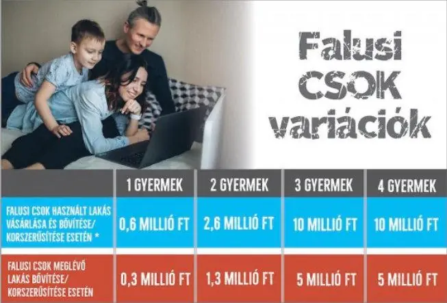 "**Falusi CSOK lehetséges**" auf einem Haus-Verkaufsschild in Ungarn bedeutet, dass der Kauf des Hauses im Rahmen des staatlichen Förderprogramms **Falusi CSOK** (Dorf-CSOK) möglich ist. Dieses Programm ist eine Erweiterung des **CSOK** (**Családi Otthonteremtési Kedvezmény**), einem ungarischen Familienwohnungsförderungsprogramm.