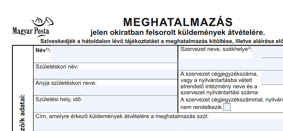 • „Authorisation for the receipt of mail items” (Englisch) – identische Vollmacht auf Englisch. Magyar Posta Zrt.